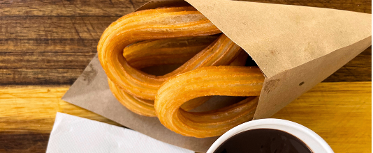 Dorado, crujiente y bañado en azúcar, cada churro es un abrazo caluroso en un bocado. Su espiral perfecta invita a disfrutarlo con un chocolate caliente.